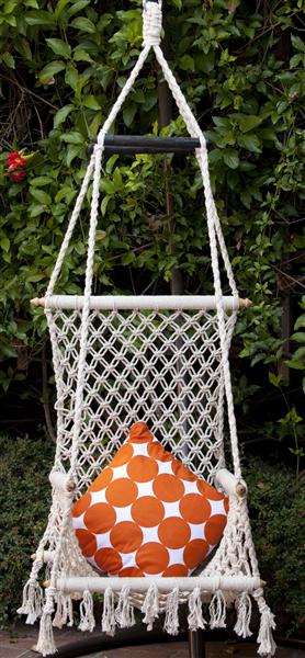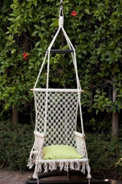 Each piece is hand woven by Artisans using Eco-friendly cotton thread. The double weaves provide extra softness and strength. Bamboo wood bars provide extra strength, durability and beauty. With no base frame, once you sit in it, it feels like a hammock. Great for kicking back and enjoying the sun or reading a book. The chair easily folds and can be packed in any carry-on, a perfect travel companion. You can hang from the ceiling, a C Stand or a tree.
